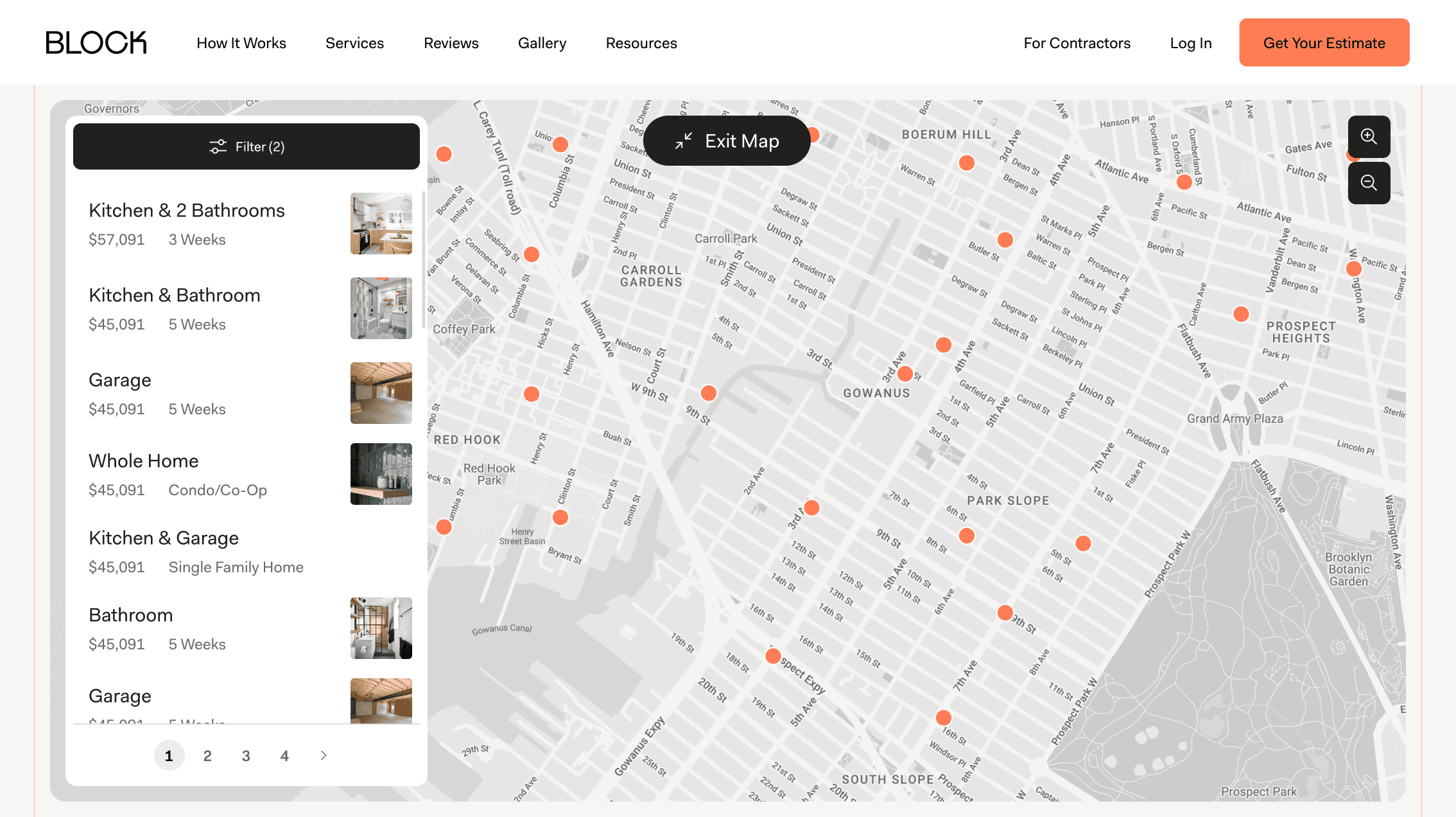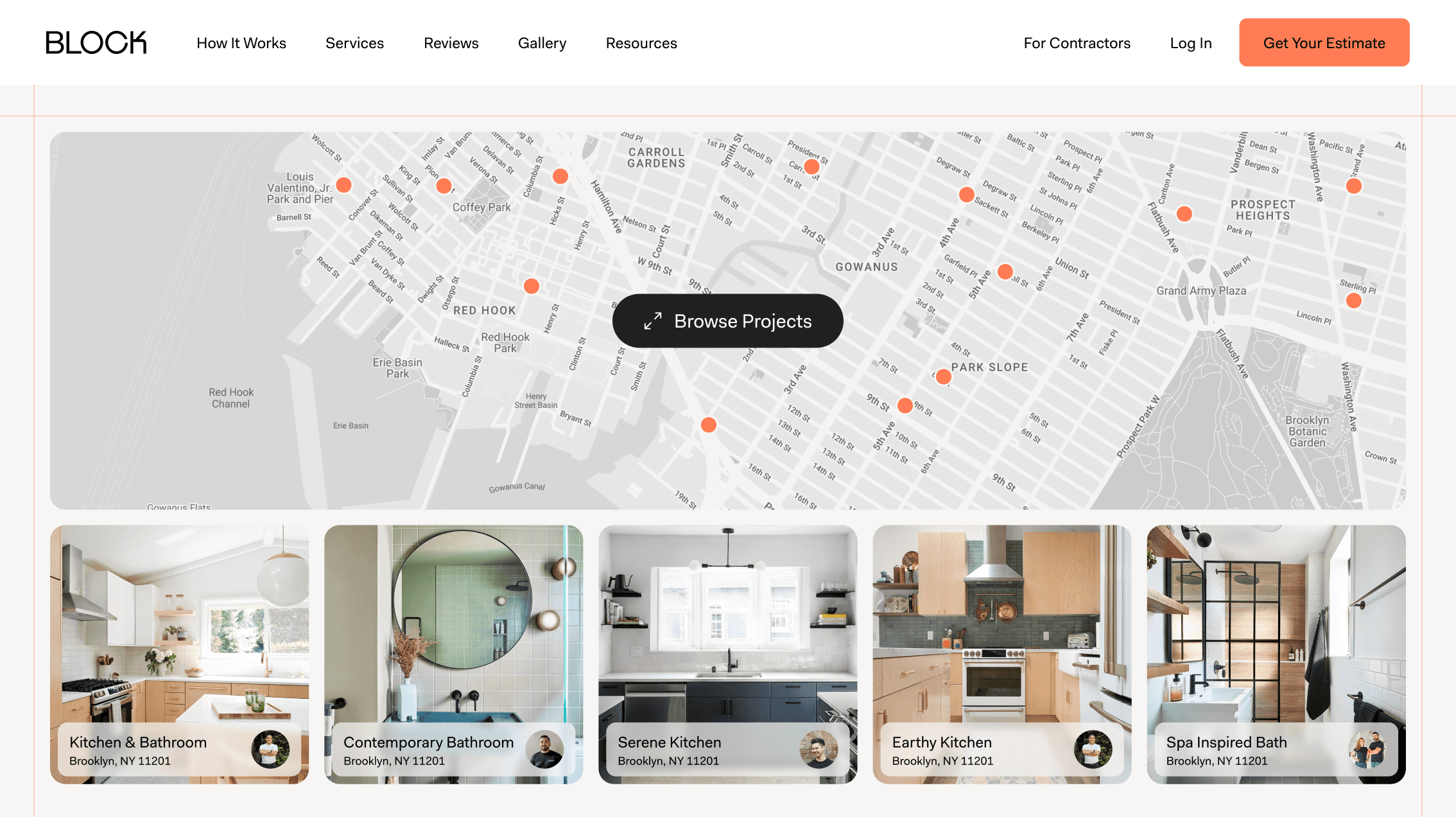 We needed a way for homeowners to browse project data without it feeling like a directory. I anchored the data using a map to make location context immediately understandable and surface things like neighborhood, scope, and price range in a way that felt more immersive than tabular.