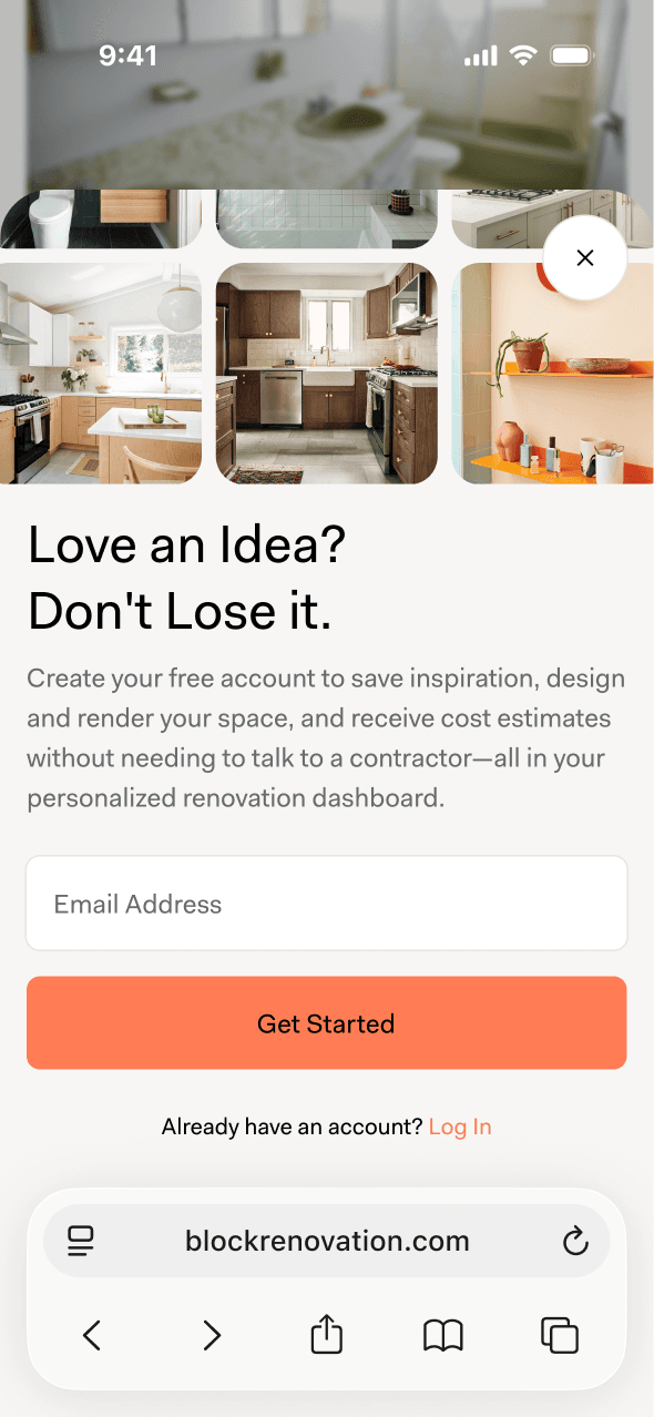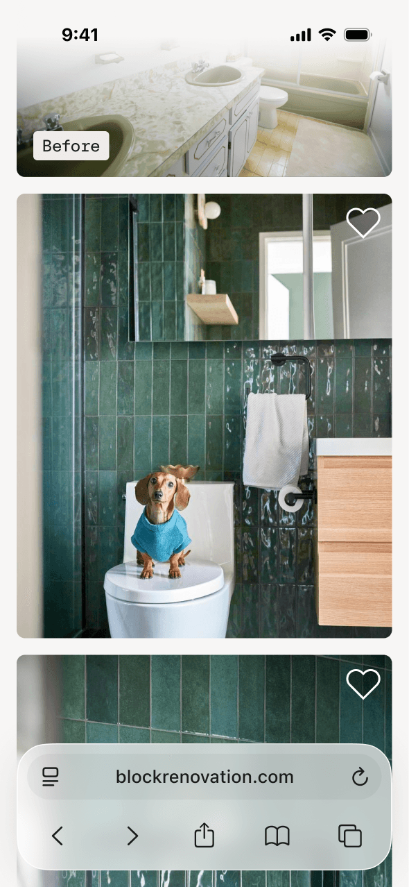Once the project data existed, we could enable homeowners to save projects they liked and use those as a starting point instead of having homeowners answer a generic quiz. It gave people something to react to rather than something to fill out.